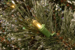 Christmas Central 12″ Pre-Lit Frosted Bristle Pine Sleigh Artificial Bush, Warm LED Lights