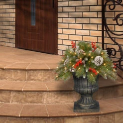 Christmas Central 18″ Pre-Lit Frosted Berry Urn Filler Christmas Garden Stakes, Warm LED Lights