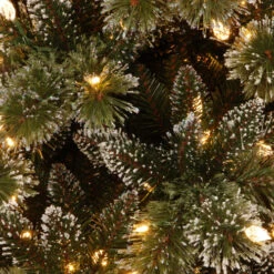 Christmas Central Pre-Lit Frosted Bristle Pine Artificial Christmas Wreath, 24-Inch, White Lights