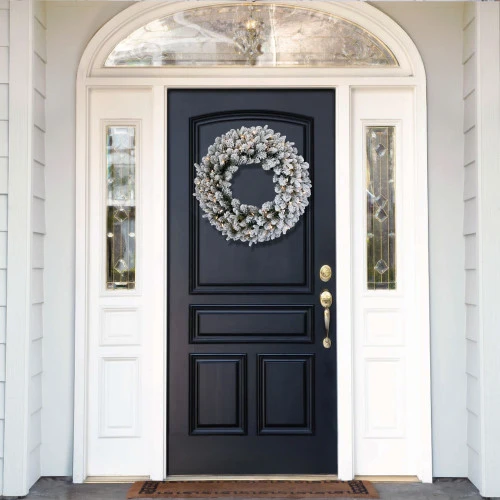 Snow dusted wreath can be displayed on doors, walls, and windows in indoor or outdoor locations